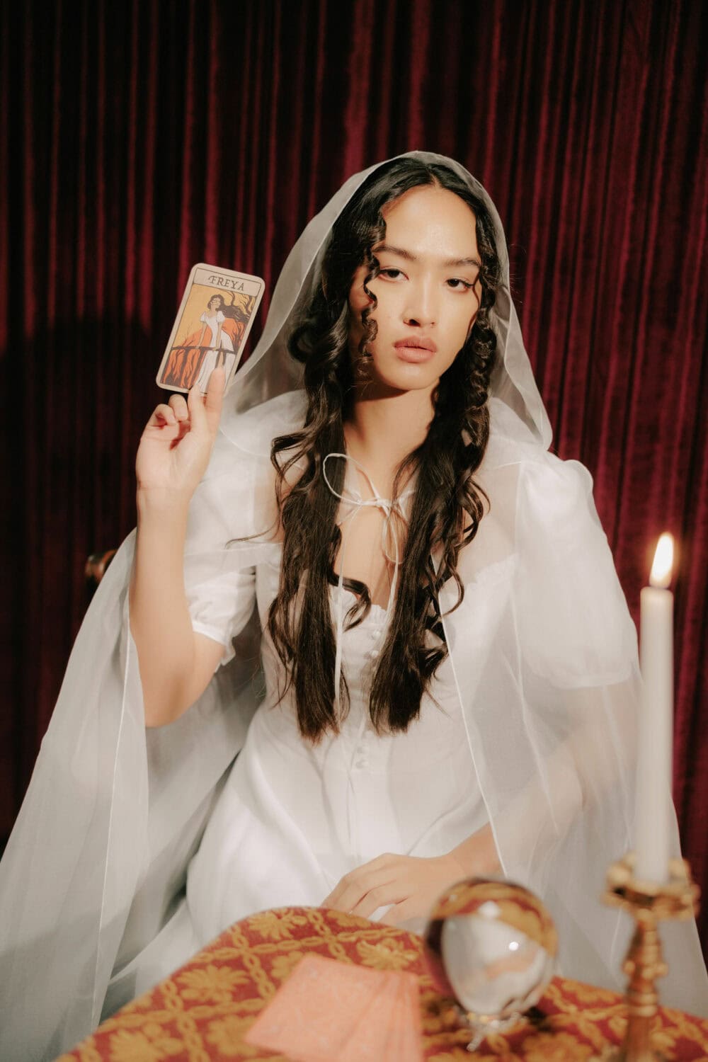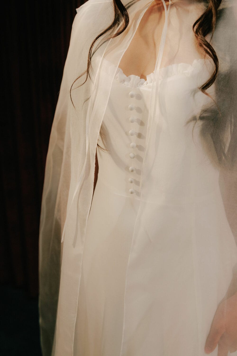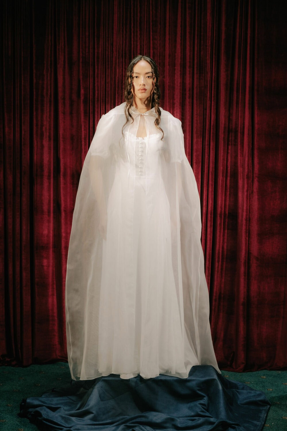 The Freya Cape is drama in motion. A sheer silk organza statement that moves like smoke and catches light with every step. Designed to slip effortlessly over bare shoulders or structured silhouettes, it adds an aura of power and mystery to the modern bride. For the woman who doesn’t just enter a room, she arrives.